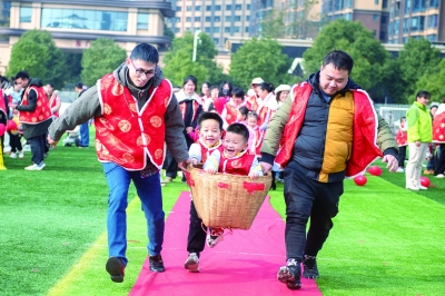 连日来,娄底市娄星区各中小学、幼儿园开展迎新年活动,小朋友们通过舞龙舞狮、趣味运动会等活动喜迎新年。图为家长和小朋友在“庆元旦 迎新年”亲子运动会上做游戏。 吴永华 摄影报道