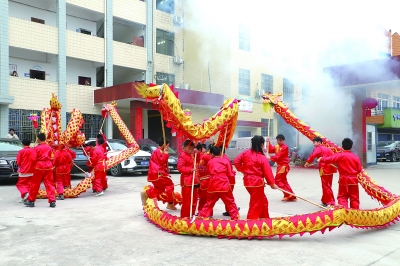 邵阳市武冈市光明小学学生手持彩绸龙身腾跃穿梭,以龙狮“共舞”促“双减”。