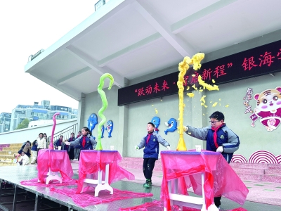 株洲市天元区银海学校开学典礼以“健康+科技”为主题,借助科学实验点燃创新火花。