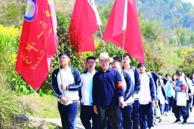 远足活动延续了学校12年传统,今年更创新性地模拟了红军长征情景,设置“血战湘江”等多个情境点,通过展板、红色文艺表演等形式,让师生在运动中接受革命传统教育。“在‘飞夺泸定桥’打卡点,我们班级模拟红军战士攀爬铁索,直观感受着当年红军战士冲锋陷阵的英勇无畏。”高2201班李硕波说。