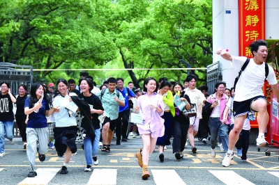 6月9日,湖南省2025年高考结束。图为长沙市一中考点,考生在考试结束后跑出考场。