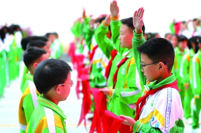 10月13日,是中国少年先锋队建队76周年纪念日。湘西土家族苗族自治州砂子坳小学举行“强国复兴有我 争当新时代好少年”为主题的入队仪式,120余名学生戴上红领巾,光荣加入中国少年先锋队。 彭彪 摄影报道