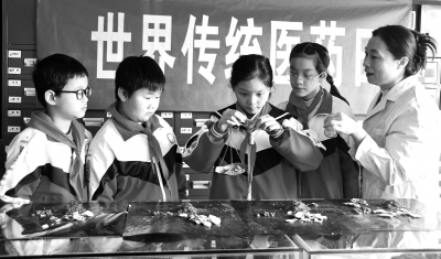 10月21日,江永县一家中药店,江永县第一小学学生在中药师的指导下体验中药的称量。为迎接“世界传统医药日”的来临,该校开展“学习中医药知识 感受中国传统文化”活动,学生们“零距离”接触中医药,感受中医传统文化魅力。