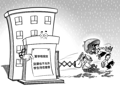 学生没课也不能待宿舍?近日,广西某职业技术学院的规定引发热议,不少学生被迫冒雨在校园内逗留的画面让人心疼。校方称此举是为了防止学生懒散,让他们形成好习惯。看似用心良苦,实则简单粗暴。育人工作贵在以学生为本,将学生“赶出”宿舍,表面上是督促学习,却忽视了学生需求的多样性。