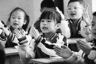 三阳明德学校低年级学生在认真上课