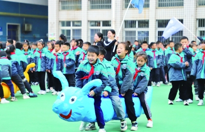 在株洲八达小学校园,一个普通的上午呈现了一幅生动的图景:清晨7时40分,操场上的慢跑队伍脚步轻快;10时的大课间,低年级的“跳跳袋”接力、高年级的“毛毛虫”竞速等引来阵阵欢呼;走廊里,孩子们踮着脚挑战“课本平衡走”;教室角落的共享器材区,随时有人取走跳绳……这是学校构建“2小时运动圈”的日常。