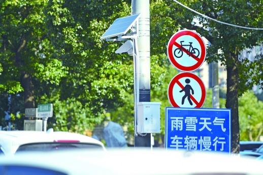 图为位于长沙市雨花区韶山南路附近的冰雪状态监测预警设备(1月8日摄)。