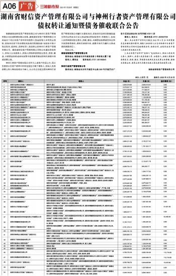 湖南省财信资产管理有限公司与神州行者资产管理有限公司债权转让通知暨债务催收联合公告