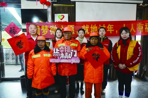 即将迎来南方农历小年,2月4日上午,由三湘都市报联合阿里巴巴天天正能量主办,长沙市雨花区孝为先社工服务中心承办的“2021,让幸福来敲门”新春公益行动带着新春物资来到长沙市天心区暮云小蜜蜂志愿者协会。在协会会长、天天正能量合伙人杨士泉的组织下,20位环卫工人、志愿者、家庭困难老党员欢聚一堂,聊家常、包饺子、贴春联、领取新春礼物……浓浓的年味和幸福的笑声,温暖了异乡的牛年春节,驱散不能回家过年的遗憾。