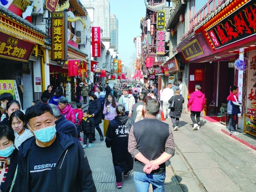 冰糖葫芦、臭豆腐、烤肉、糖画、油炸冰淇淋……春节长假,加上就地过年的号召,长沙市天心区太平街的烟火气更浓了。2月17日,正值大年初六,太平街上早已是人山人海,游客们或边逛街边品美食,或拍照留念,或参观贾谊故居,热闹场景,喜不胜收。(扫报眉二维码看视频)