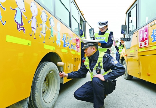 2月24日,洞口县公安局交警大队民警在辖区文昌街道一所幼儿园对校车车况进行安全检查。新学期开学前夕,该县开展校车安全专项检査行动,对各学校、幼儿园校车的安全性能、防护设施、防疫措施、消防、救援设备配备等情况进行逐一检查,从源头上消除各类安全隐患,确保学生乘车安全。