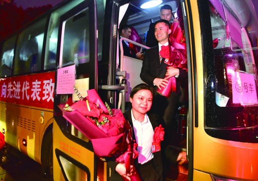 飞机停稳、舷梯放下,代表们意气风发走出机舱。前来迎接的省领导与获奖代表们一一握手,工作人员为代表们献上鲜花。隆重而简约的欢迎仪式后,公安交警以最高规格护送代表们返回驻地。