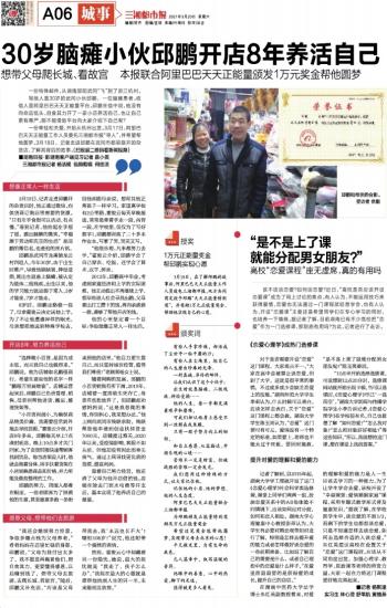 30岁脑瘫小伙邱鹏开店8年养活自己
