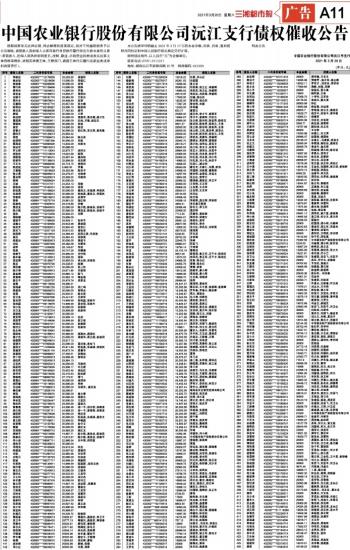 中国农业银行股份有限公司沅江支行债权催收公告