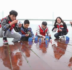 ▲3月21日,衡阳市雁峰区东洲岛,南华大学土木工程学院的青年志愿者在检测湘江水质。