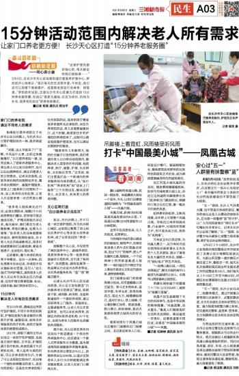 据介绍,天心区将在两年内实现每个街道建成一个综合性养老服务中心,社区建设一个嵌入式养老服务点全覆盖,基本建成南部新城健康养老服务基地,年均养老床位增加20%以上,新增养老床位2000张,以逐步实现老年人步行15分钟就能满足养老服务需求,让老人在家门口颐养天年。