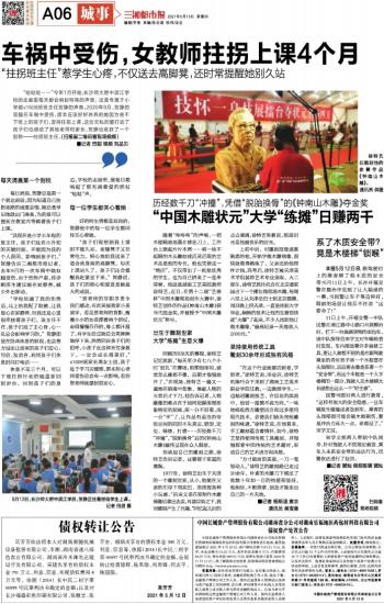 车祸中受伤,女教师拄拐上课4个月