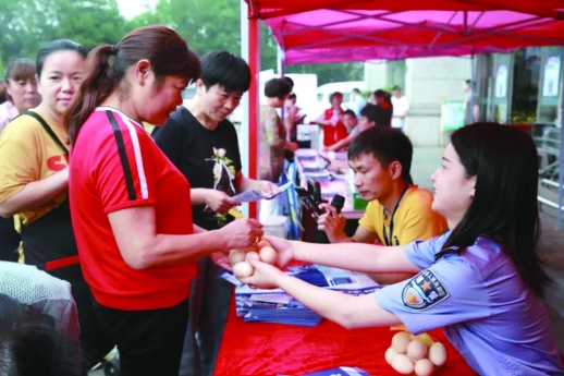 什么是“反诈蛋”?怎样制作“反诈蛋”?宁乡市公安局民警与街道办事处、超市方一起,将反电信网络诈骗标语印在鸡蛋壳上,鸡蛋就成了“反诈蛋”了。现场开展“答题送鸡蛋”活动,参与市民只需答对一道题,就能获得10枚“反诈蛋”。