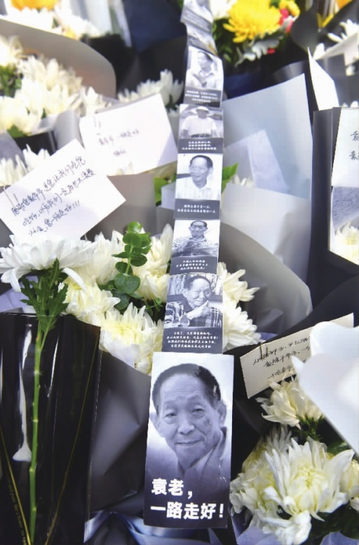 5月24日,明阳山殡仪馆,前来吊唁送别的群众打印出袁隆平院士的图片,缅怀追思。当天,袁隆平遗体送别仪式在长沙市明阳山殡仪馆举行。