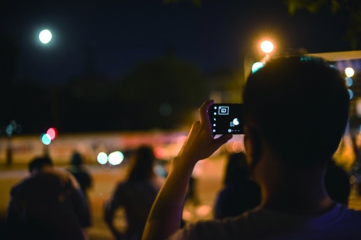 5月26日,市民在北京市西城区观看月食现象。