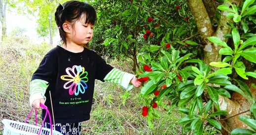 放眼望去,不止树上挂满了杨梅,地上也落满了熟透的果实。朱代波说,这段时间升高的气温,也加速了杨梅的成熟落地,让本来就不长的采摘期更加短暂。他笑言,这太阳晒得杨梅也“吃不消”,都想到地面上“乘凉”了,“顶多还能坚持一个星期左右,小伙伴们再不来就晚了!”