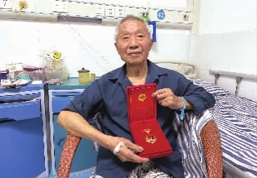在社区工作人员离开病房之前,曾祥奇老人将光荣在党50年纪念章慢慢放进了病房床头的抽屉里,“回家后把它和抗美援朝纪念章一块放进抽屉里,这样每天拿东西的时候就会看见。”