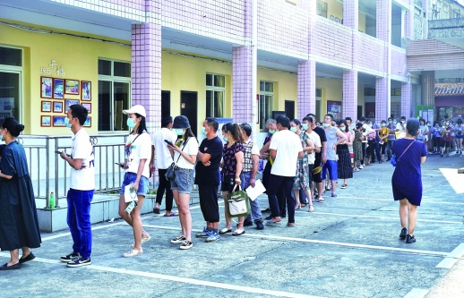 6月24日清晨7点,卫生服务中心早早排起了70余人的长队,一直延续到了大门口处。“刚送完小孩去幼儿园,就过来打针。白天要上班,晚上要带娃,抓紧早上的时间,把第二针打了。”附近居民李女士感慨道,延长接种时间,医护人员加班加点放弃周末休息,方便了广大上班族,“尤其是我们这种身兼数职的上班宝妈,不用请假来打针。早上虽然人多点,但凉快。接种秩序也好,不着急。”