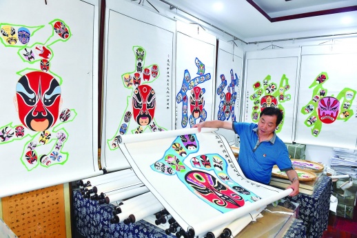 “脸谱的应用远不止戏曲中,可以将脸谱和字画结合起来,做成脸谱字。”通过多年练习,许国章在绘制脸谱上做了很多创新和尝试,这一次他决定用脸谱进行特别的创作。