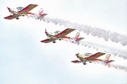 以蓝天为幕,以飞机为画笔。紧接着,第一通航特技飞行表演队驾驶XA42飞机,带来单机SOLO表演。据悉,这是目前国内最高水平的单机表演,而XA42飞机,则号称当今世界上最先进、安全性最高的特技飞机。