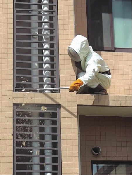 夏日酷暑,马蜂横行。7月份以来,短短19天长沙消防已处置299起马蜂扰民警情,为解民忧纾民困,消防员整个夏季都在与“狂蜂”斗智斗勇。记者 张洋银 实习生 彭芷萱 通讯员 林思 刘姿 摄