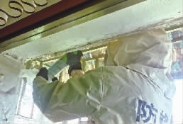 金海学校宿舍区,6楼阳台外有一马蜂窝紧贴墙面,马蜂飞来飞去,时不时发出“嗡嗡”声,学生开关窗户时稍不注意,就会受到袭击。由于现场无法登高处置,消防员只能在绳索保护下利用厨房柜台做登高点,使用杀虫剂对其进行喷射驱赶消杀,再用袋子将蜂巢摘除。