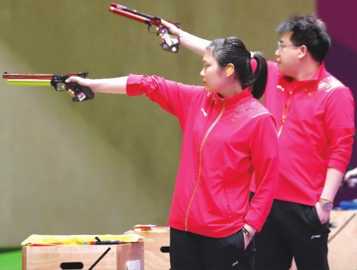 在决赛开局处于被动的情况下,中国组合庞伟/姜冉馨在10米气手枪混合团体项目的比赛中实现逆转,以16比14击败俄罗斯奥委会代表队选手,摘下该项目冠军。
