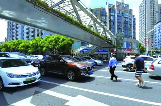 上午11点,三湘都市报记者跟随长沙市公安交警支队开福大队二中队民警来到营盘路与蔡锷路路口,营盘路上两座人行天桥桥下,成了部分车主等候红绿灯时“避晒” 之地。