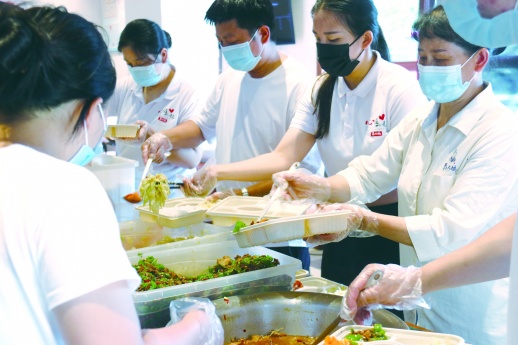 “7月30日以来,我们平均每天准备约2000份爱心餐,最多一天备了2400份。”该公司负责人宋金绒说,为了保证食品安全和送餐质量,公司安排富有经验的厨师和服务人员上岗,上岗前需经过至少两次核酸检测,送餐路线也必须按既定规划路线。