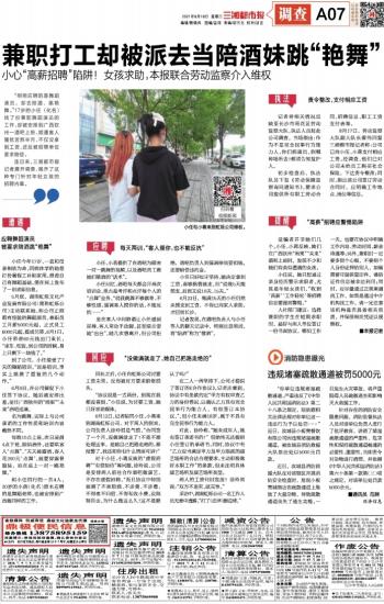 “明明应聘的是舞蹈演员,却去陪酒、跳艳舞。”17岁的小任(化名)找了份兼职舞蹈演员的工作,却被安排到广西钦州一酒吧上班,频遭客人骚扰苦熬半月,不仅没拿到工资,还反被招聘单位要求赔偿。