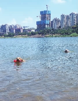 发现多多和雪糕有这个意识后,今年8月开始,张卫华开始对它们进行针对性训练:游泳、水中抛物、指令学习。仅仅10天,雪糕和多多捡拾垃圾的技能已经“炉火纯青”。