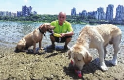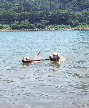 当日上午11时30分,三湘都市报记者在株洲天元大桥西桥头水域附近,见到了这两条在网络上走红的“环保狗狗”。两只狗朝着主人张卫华扔出的石块方向奋力游去,将两个漂浮在江面的塑料水瓶叼住,然后游上岸,将垃圾放在河堤上。随后,两条狗狗用力甩身上的水,又趴在岸边默默注视着河流。
