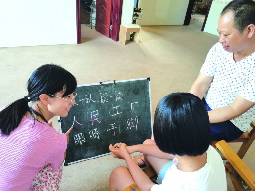 当天的识字课,陈艳辉父女一个字一个字地教小卉(化名)学习“中秋节快乐”几个字,用了一个小时,小卉就能清晰地读出,向爷爷奶奶送上了节日祝福。收到孙女的节日祝福,两位老人红了眼眶,满脸感激,“现在娃娃的情况比以前好多了,陈老师和陈爸爸挺辛苦,每个星期都来家里教书。”