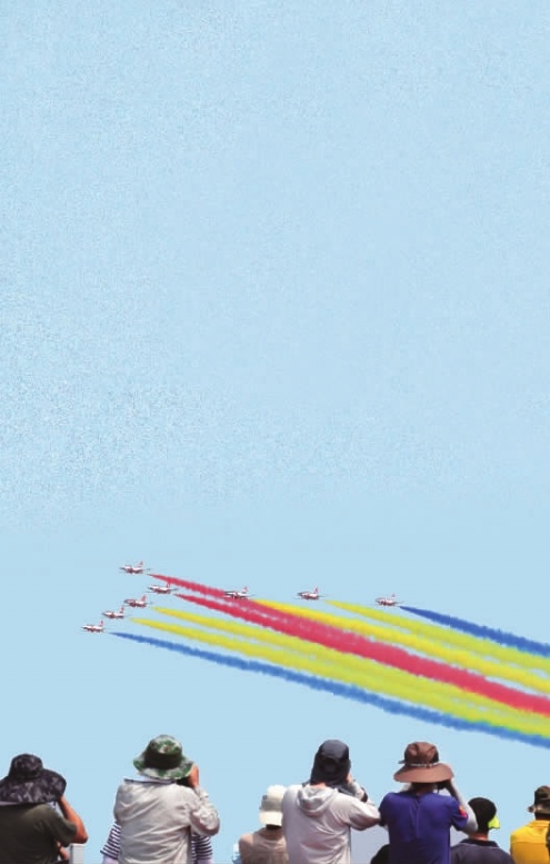 第十三届中国国际航空航天博览会9月28日在珠海开幕。除了歼-20、运-20和空警-500、轰-6K、红-9B、610雷达等一大批主战装备在航展上集中亮相外,新型电子战飞机歼-16D和高空无人侦察机无侦-7等装备也首次亮相航展。 图为中国空军航空大学“红鹰”飞行表演队(下图)和歼-20(上图)在开幕式上进行飞行表演。