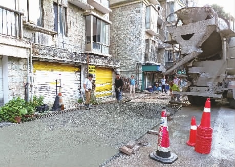 9月28日,长沙市开福区金色比华利小区内,沥青路面正全面提质改造。修路费无需动用一分钱维修基金,全是来自小区公共收益。