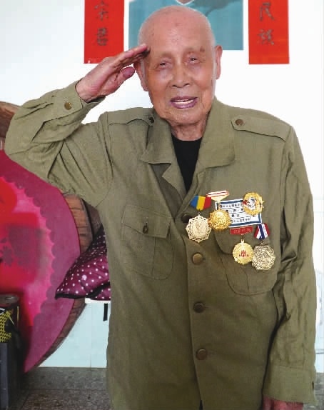 9月29日,在烈士纪念日与国庆节来临之际,记者来到浏阳市永安镇坪头村,探访百岁抗战老兵朱洪斌,重温峥嵘岁月。刘品贝 摄