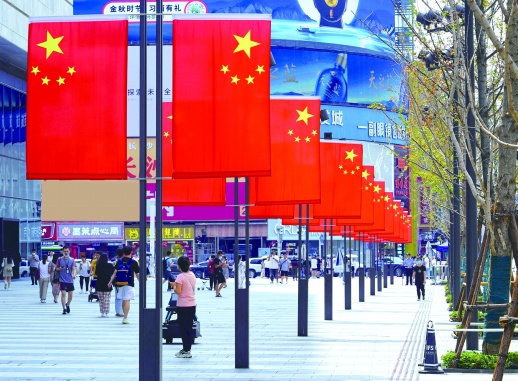 9月30日,国庆前夕的长沙氛围拉满,整个城市喜气洋洋,大街小巷挂满五星红旗,用最美的“中国红”向祖国真情告白。