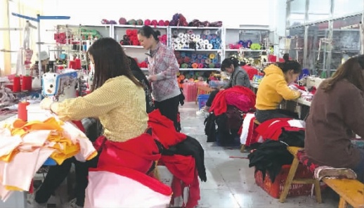 10月12日,在益阳湘银之舞有限公司的工厂,70多名工人正在生产线忙碌。他们生产的广场舞服,通过网络平台销往香港、澳门以及美国等地。