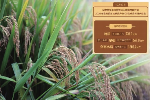 晚稻“叁优一号”实地测产平均亩产936.1公斤!10月17日中午,在衡南县向阳桥街道清竹村梓木冲示范基地,湖南省农学会组织专家对湖南杂交水稻研究中心研发的第三代杂交稻晚稻组合“叁优一号”进行测产,专家组组长、中国科学院院士谢华安公布了这一结果。加上该基地7月测产的早稻“株两优168”亩产667.8公斤,周年亩产稻谷突破1600公斤,达到1603.9公斤。