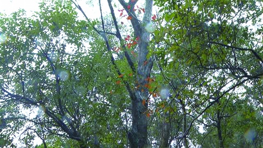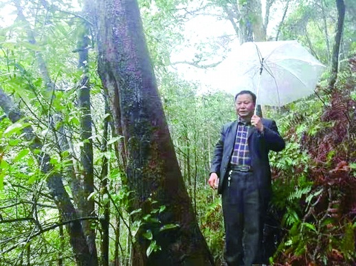 10月30日,中南林业科技大学、中南地区树木分类权威教授喻勋林翻山越岭,来到湖南南山国家公园境内一处海拔650米的阔叶林中,对一株高大挺拔的小叶红豆进行测量鉴定。这株小叶红豆胸径45厘米,高约25米,冠幅达300余平方米,宛如一把撑开的巨大绿伞。小叶红豆被列入国家一级保护野生植物。