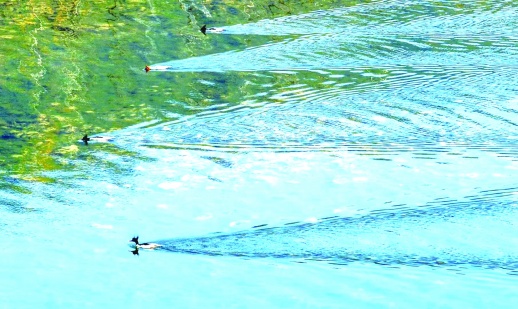 一群“稀客”的到来,让常德市石门县仙阳湖国家湿地公园变得热闹起来。“稀客”是16只中华秋沙鸭。冬日暖阳下,它们悠闲地穿梭在水面,有的梳毛展翅,有的自由翱翔,还有的一头扎进水里,捕捉食物,表情丰富煞是可爱,引来不少摄影爱好者的围观。