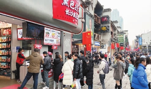 元旦三天,长沙再次成为顶流之城。1月1日,记者在五一广场看到,不少店铺门口排起了长队,队伍大多长达十余米,这些排长队的店铺以奶茶店、臭豆腐店为主。“元旦当天长沙门店客流量达到了3万人左右。”墨茉点心局区域经理谭振华介绍。