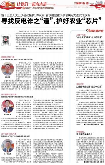 在省十三届人大五次会议上,大会秘书处议案建议组共接收了3件代表议案。分别是益阳代表团徐健等12名代表联名提出的《关于出台我省〈关于加强打击治理电信网络诈骗犯罪工作的决定〉的议案》,长沙代表团钟志鹏等10名代表联名提出的《关于尽快制定〈湖南省知识产权保护条例〉的议案》,邵阳代表团孙小武等12名代表联名提出的《关于省人大常委会听取和审议我省种业发展专项工作报告的议案》。