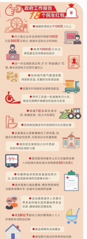 3月5日提请审议的政府工作报告强调,社会政策要兜住兜牢民生底线,提出切实保障和改善民生,坚持尽力而为、量力而行,不断提升公共服务水平,着力解决人民群众普遍关心关注的民生问题。