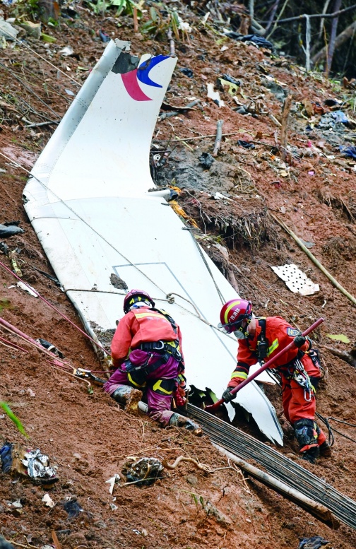 3月24日,东航MU5735航空器飞行事故搜救进入第4天,工作人员仍在努力搜寻幸存者,搜寻范围已经扩大了近5倍。截至当日16时,共搜寻到遇难者遗物21件、飞机残骸183份和部分遇难者遗体残骸,已移交调查工作组。